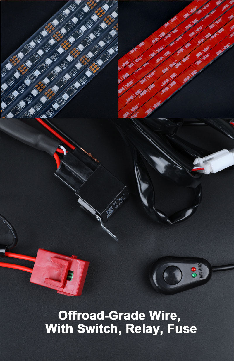At Shadow Glow, we're proud to offer a seamlessly plug-and-play system with customizable lengths. It's as straightforward as measuring your car, selecting the right strips, and effortlessly installing them! Our plug-and-play design ensures easy strip replacement if any damage occurs. Rest assured, our durable, IP68+ waterproof color-chasing LED strips, secured with robust 3M tape, guarantee a reliably illuminated journey.